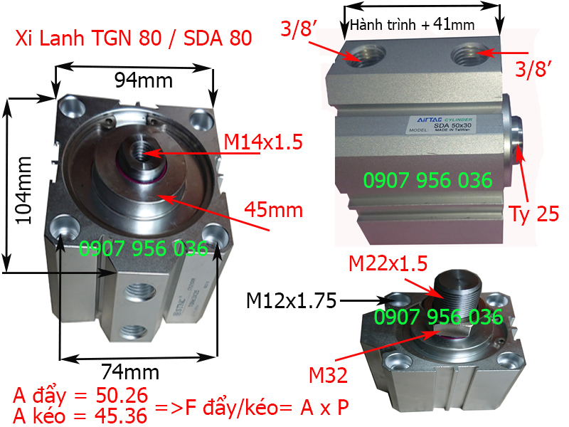 Thông số kĩ thuật chi tiết xi lanh TGN/ SDA