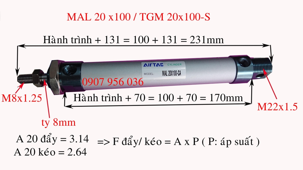 Báo giá xi lanh khí nén MAL 20 : Xy Lanh MAL 20
