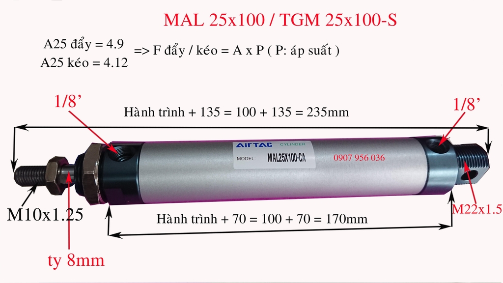 Báo giá xi lanh khí nén MAL 25 Xy Lanh MAL 25