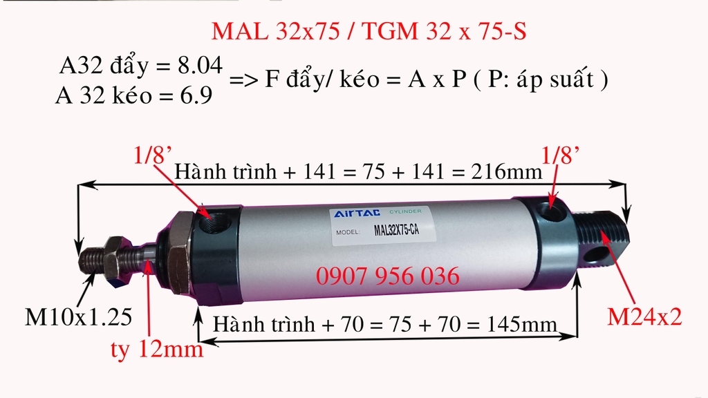 Báo giá xi lanh khí MAL 32 Xy Lanh MAL 32