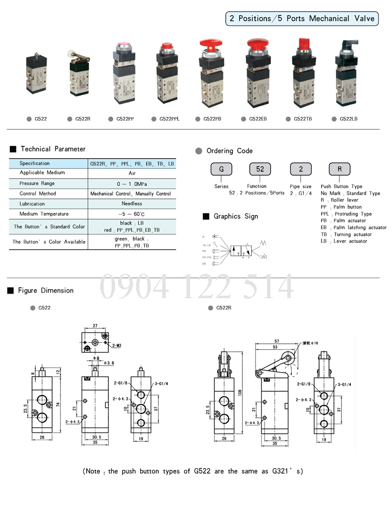 Công tắc hành trình khí nén 5 cửa G 522