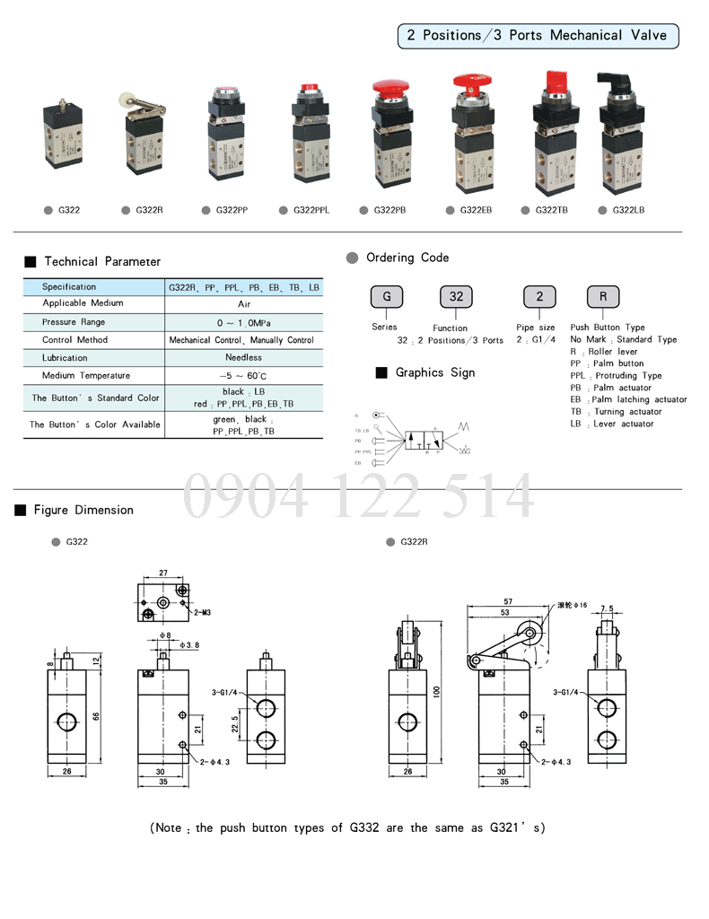 Công tắc hành trình khí nén 3 cửa G 322