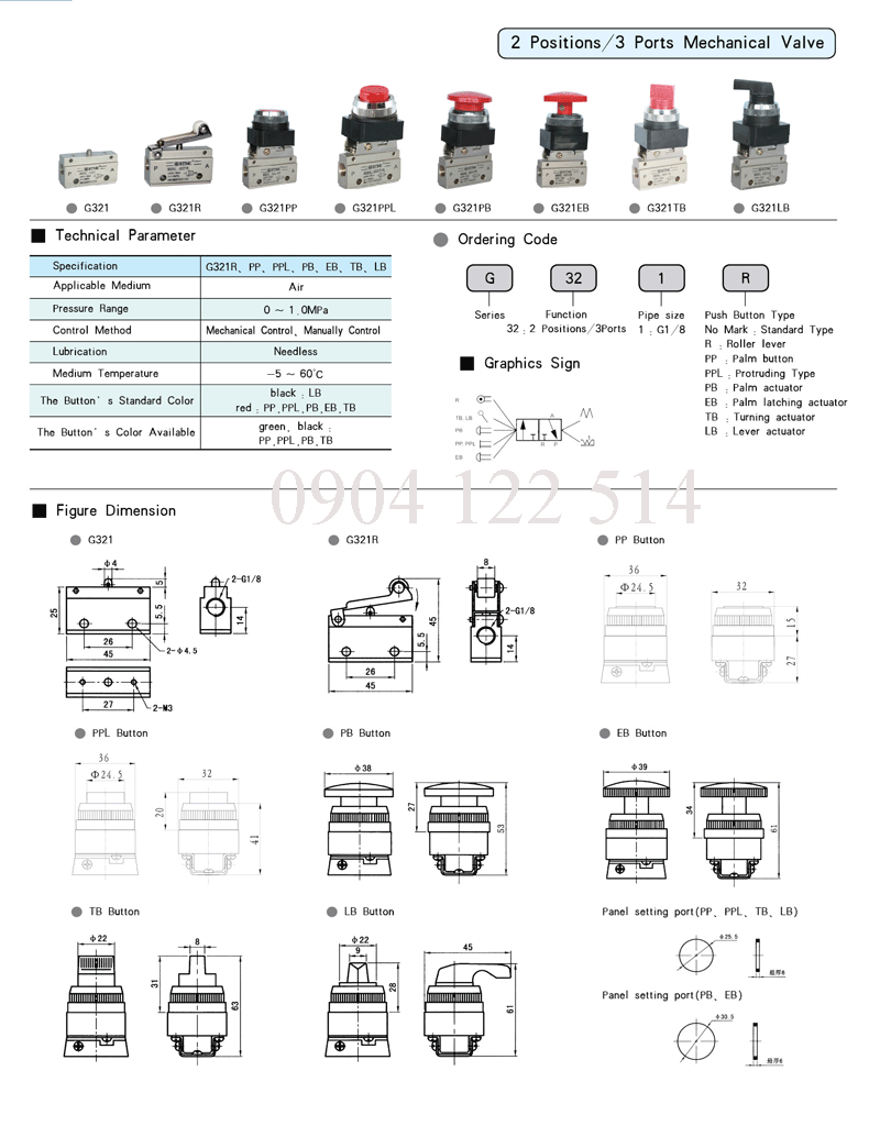 Công tắc hành trình khí nén 2 cửa G 321