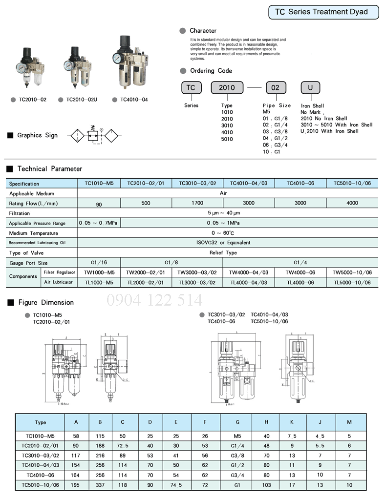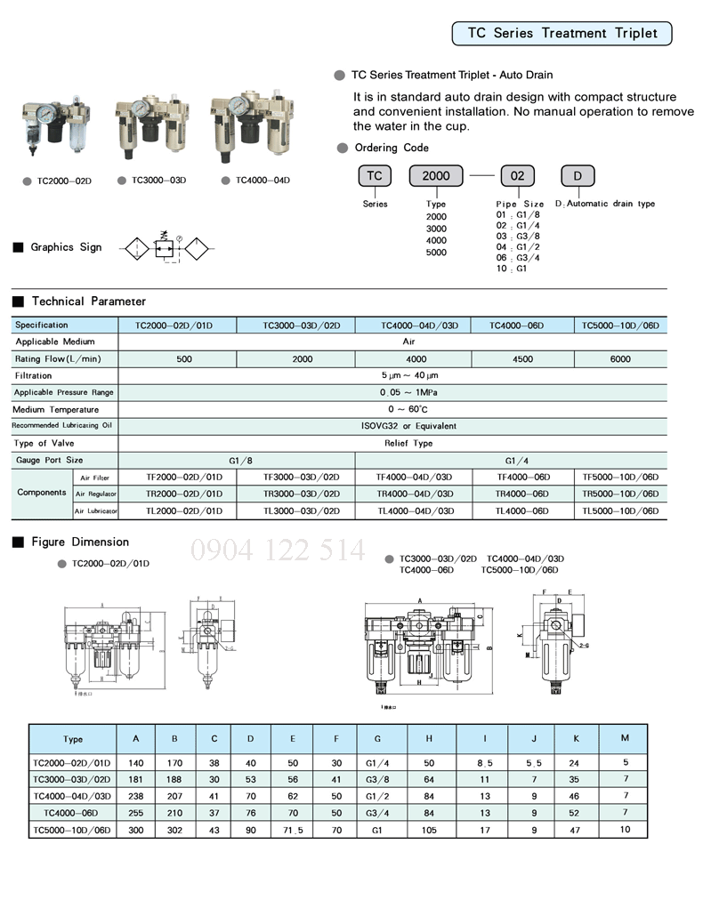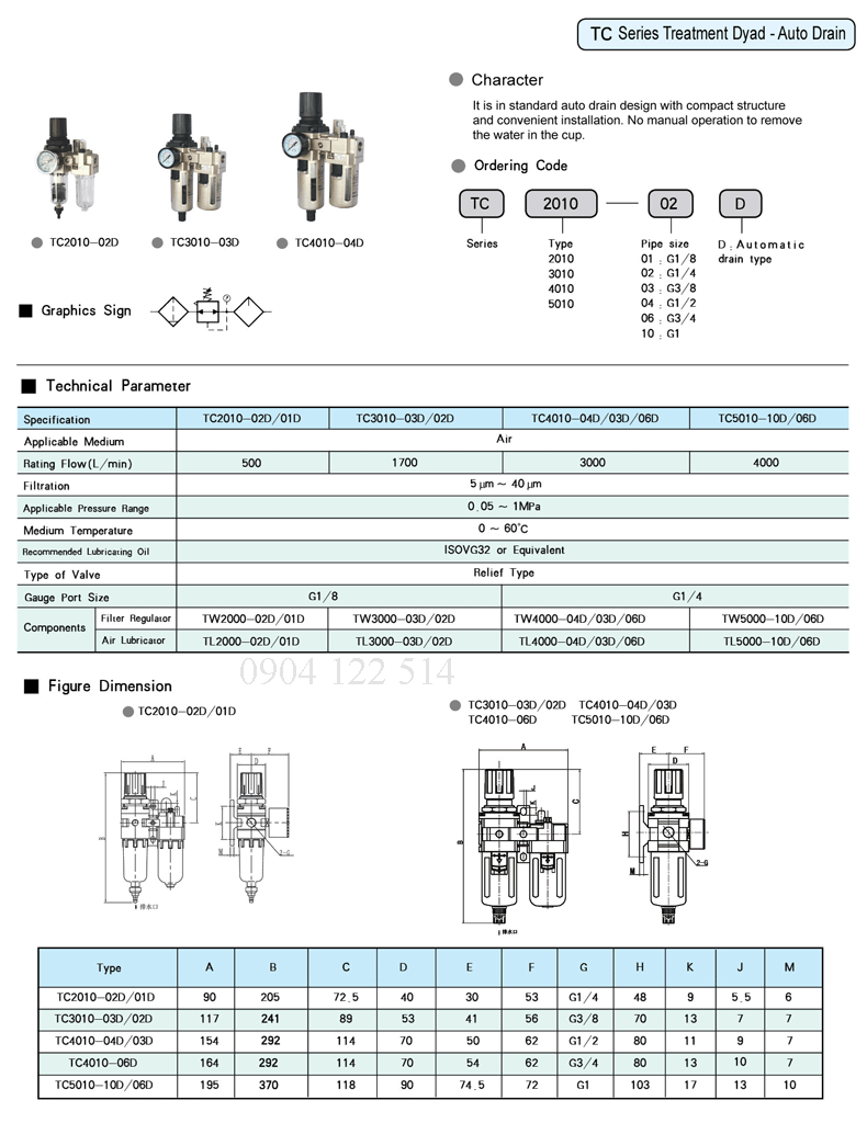 Lọc khí nén bộ đôi : Điều áp + Lọc tách nước tự động + châm dầu bôi trơn
