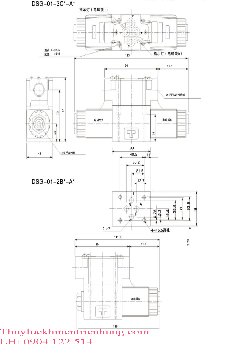Bản Vẽ Kĩ Thuật Van Điện Từ Thủy Lực DSG Size 01 <=> Size 02 Điện áp 1 chiều DC ( 24V,12V )