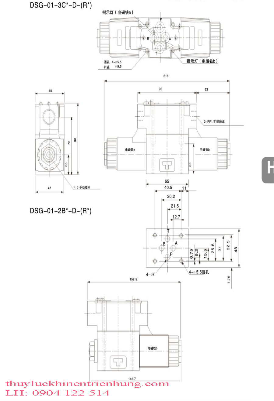 Bản Vẽ Kĩ Thuật Van Điện Từ Thủy Lực DSG Size 01 <=> Size 02 Điện áp xoay chiều AC ( 220V,110V )