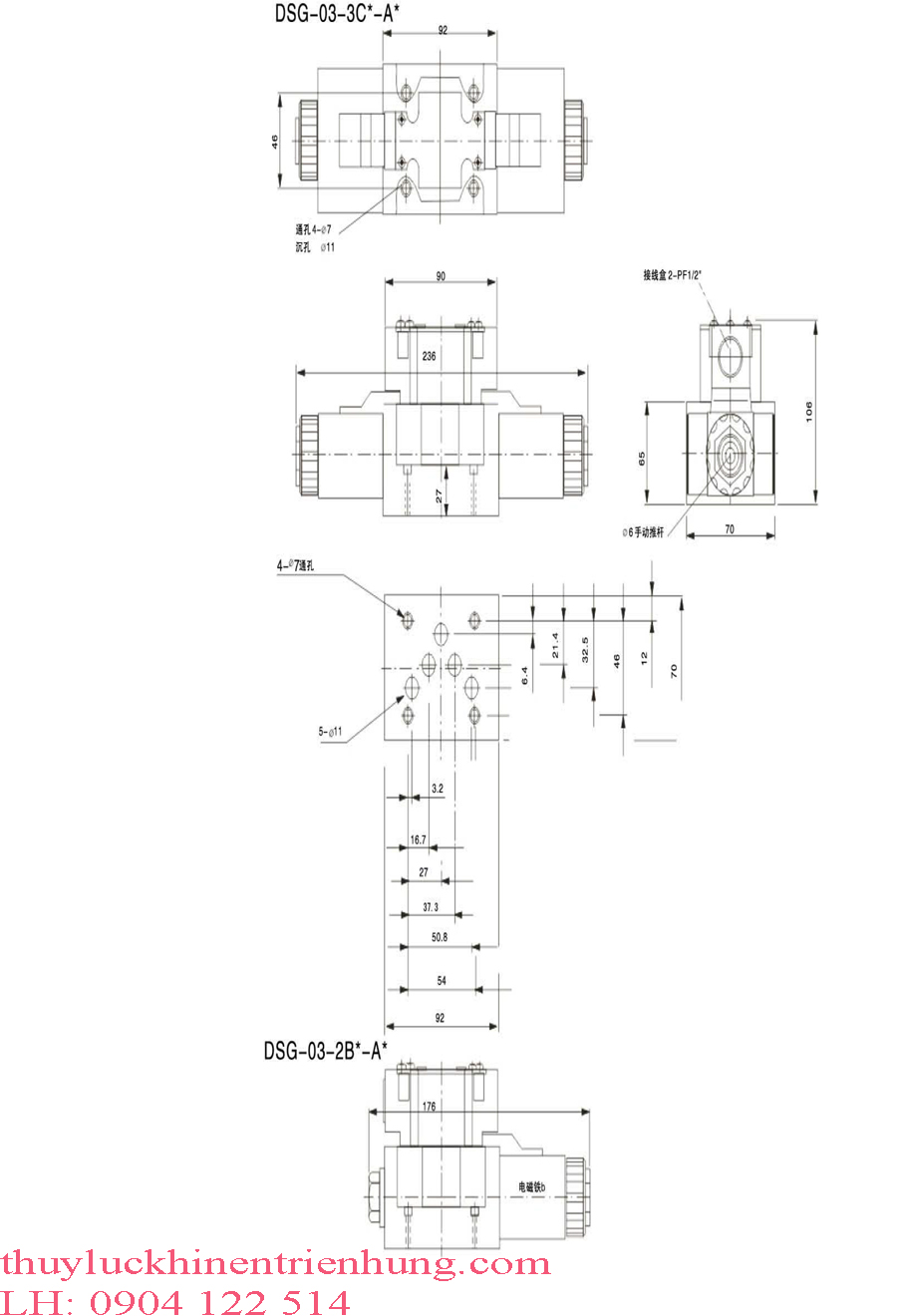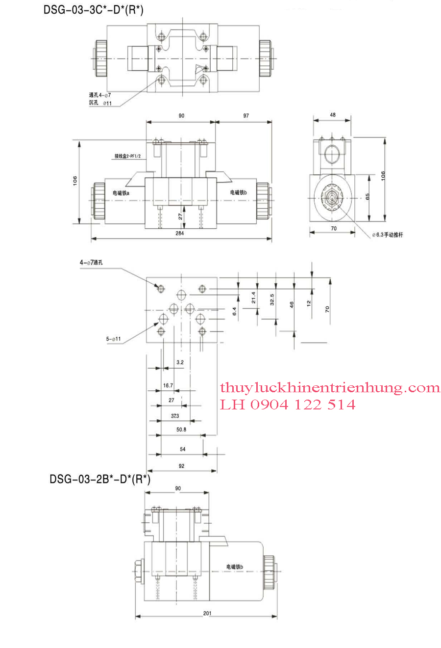 Bản Vẽ Kĩ Thuật Van Điện Từ DSG Size 03 Điện Áp 1 chiều DC ( 24V, 12V )